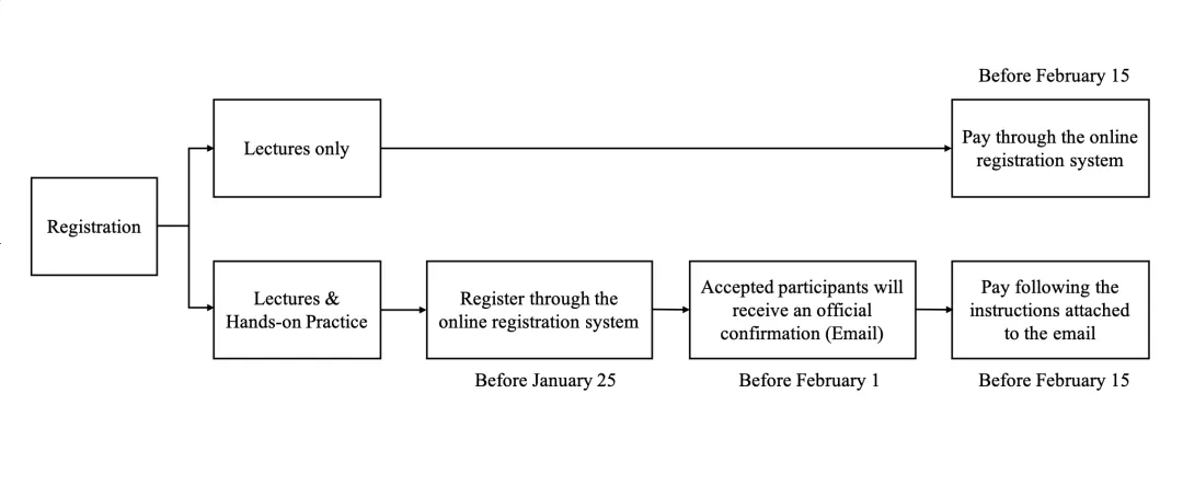 (1)讲座+上机实践:为保证教学质量,学习班的实践环节仅限50位名额,将根据已有基础适当筛选学员。请于2025年1月25日(含)前报名并按要求提交表格。合格者将于2025年2月1日前收到正式报名邮件通知,然后缴费锁定名额。