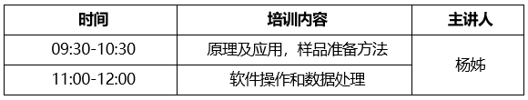 培训内容:仪器原理及应用,样品准备方法,软件操作