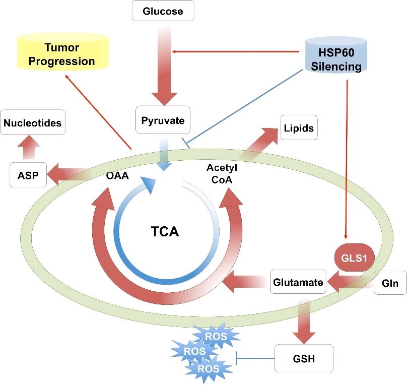 肾透明细胞癌(Clear cell renal cell carcinoma, ccRCC)是肾癌中最主要的一种亚型,具有典型的Warburg表型。清华大学生命科学学院邓海腾课题组的早期工作发现线粒体的损伤促进ccRCC细胞的增殖和转移,但是线粒体在ccRCC的发生发展中发挥什么样的功能一直是一个没有解决的问题。2019年5月13日,该课题组与国家蛋白质科学研究(北京)设施清华基地蛋白质组学和代谢组学平台合作在《氧化还原生物学》(Redox Biology)杂志在线发表题目为“HSP60敲低促进ccRCC细胞瓦博格效应并将线粒体功能从ATP生成转变为的生物合成”(HSP60 Silencing Promotes Warburg-like Phenotypes and Switches the Mitochondrial Function from ATP Production to Biosynthesis in ccRCC Cells)的研究论文。该研究利用稳重同位素示踪技术结合代谢组学、蛋白质组学等方法揭示了HSP60敲低通过促进肾透明细胞癌细胞线粒体的谷氨酰胺代谢来促进癌细胞的生长,提示抑制谷氨酰胺代谢是肾透明细胞癌的一个治疗靶标。