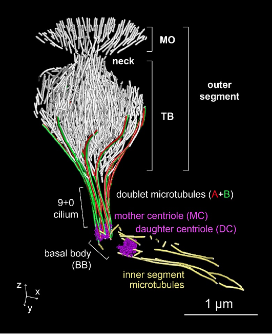图1. 力感受神经元中特化纤毛内基于微管的细胞骨架三维结构