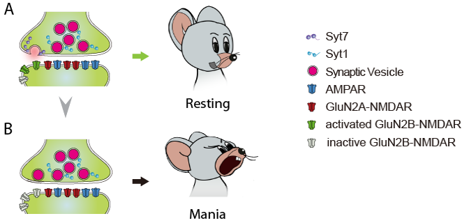 图一. Syt7缺陷导致双相躁狂的发生机理