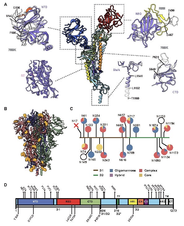 图2. Delta变异株S蛋白的高分辨原位结构