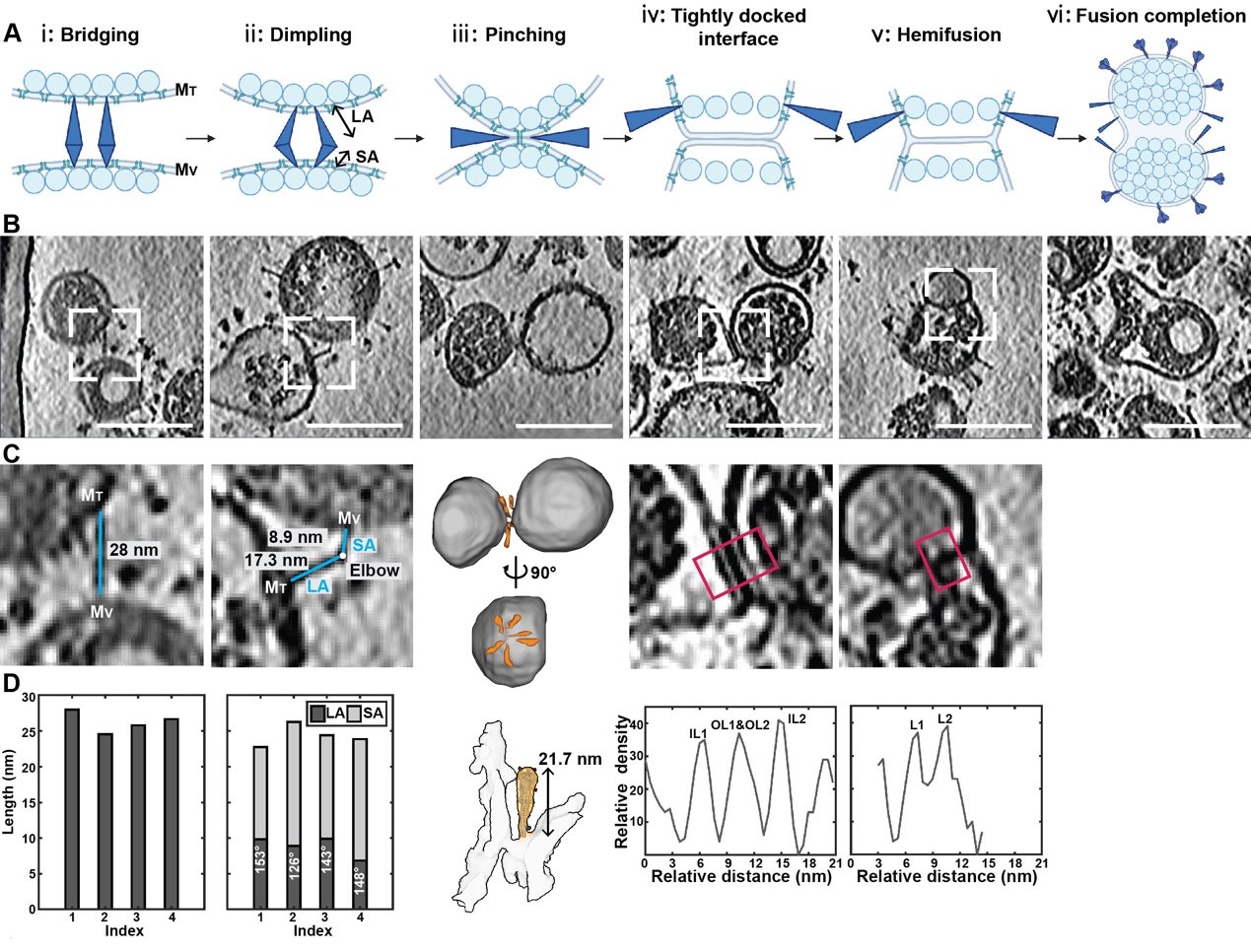 图3. S蛋白介导的新冠病毒Delta变异株膜融合过程