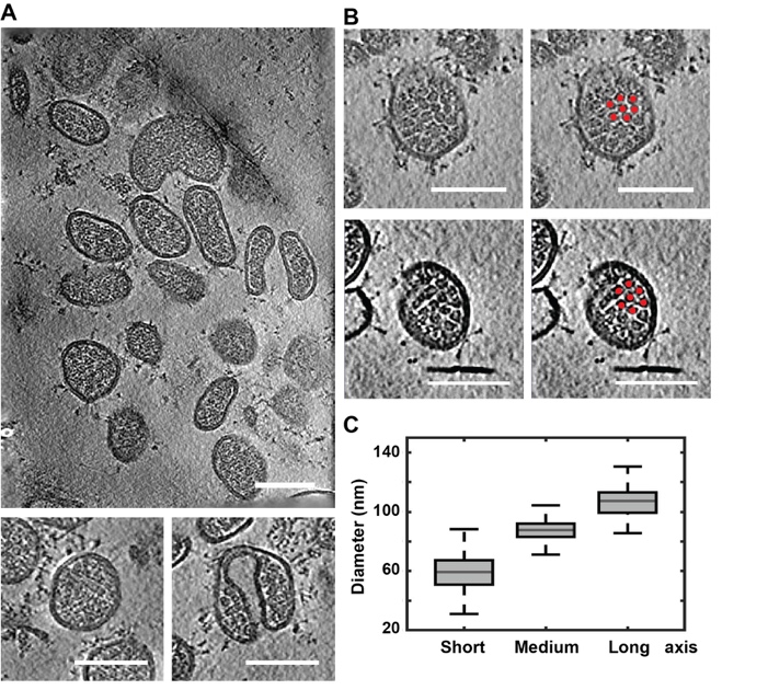 图1. 高能电子束辐照灭活的新冠病毒Delta变异株形态