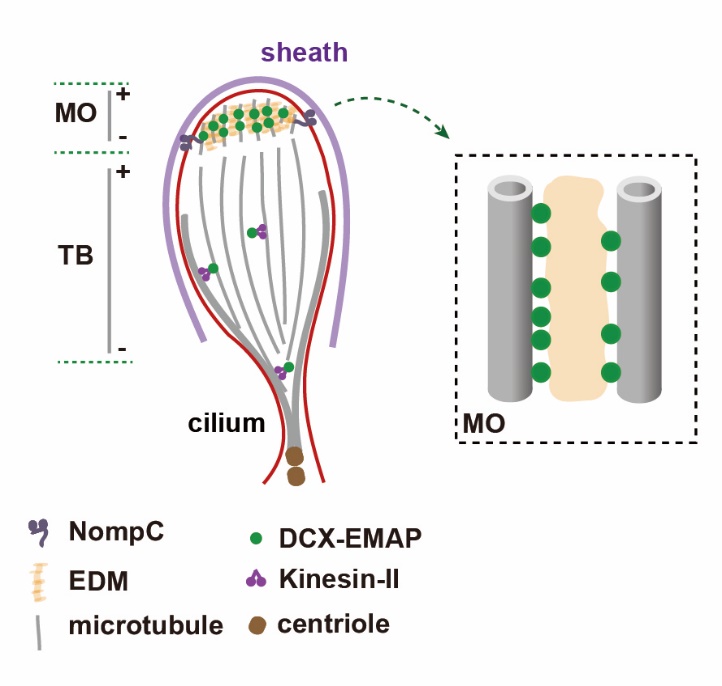 图二.DCX-EMAP参与力感受器结构组织的分子机制