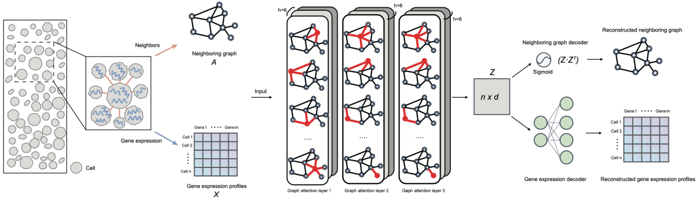 在多细胞生物体中,尽管所有细胞共享相同的基因组,但由于内部基因调控网络的差异以及与周围微环境中相邻细胞的外部信号交流,它们在形态、基因表达和功能上展现出显著的多样性。相邻的不同种类细胞之间再通过复杂的相互作用,形成一定功能的组织模块。近年来,随着空间转录组技术的不断发展,研究者能够在单细胞分辨率下获得细胞的基因表达谱,同时保留细胞在组织内的空间位置信息。因此,如何有效地利用这些空间位置信息来揭示复杂组织中细胞的空间排列模式和相关的生物学功能,即识别空间细胞亚型和发现组织模块,是空间转录组数据分析的核心任务。