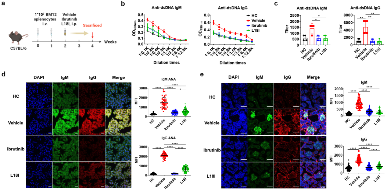 图1 L18I可有效缓解BM12诱导的小鼠狼疮症状