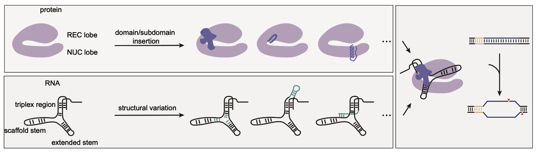 图 3 CRISPR-Cas12e家族的蛋白和引导RNA的进化多样性