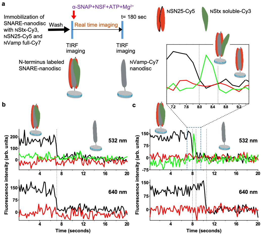 2025年1月2日,清华大学生命科学学院隋森芳课题组与陈春来课题组合作,在《自然通讯》(Nature Communications)杂志发表了题目为“单分子双色和三色FRET研究揭示了NSF解聚SNARE复合体过程中的过渡态(Single-molecule two- and three-colour FRET studies reveal a transition state in SNARE disassembly by NSF)”的研究论文,澄清了SNARE解聚的顺序问题。