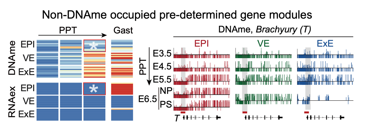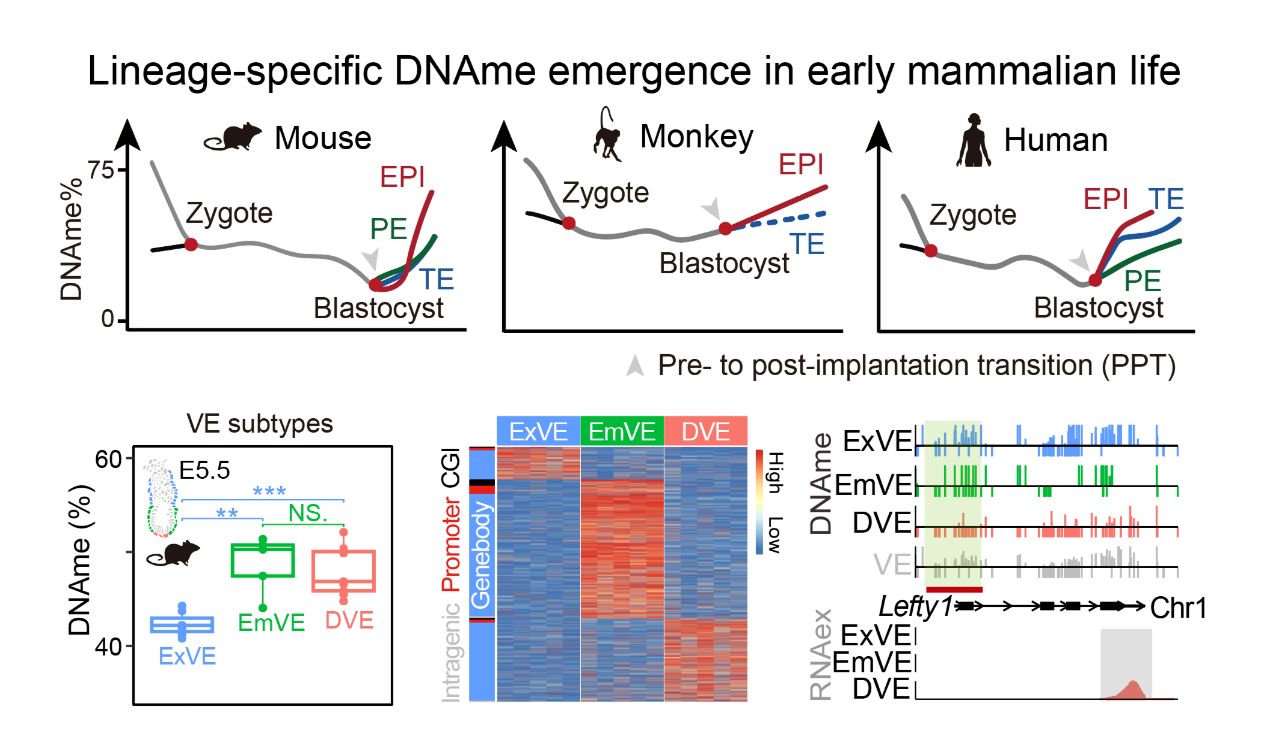 图1: 哺乳动物早期谱系特异性DNAme的出现