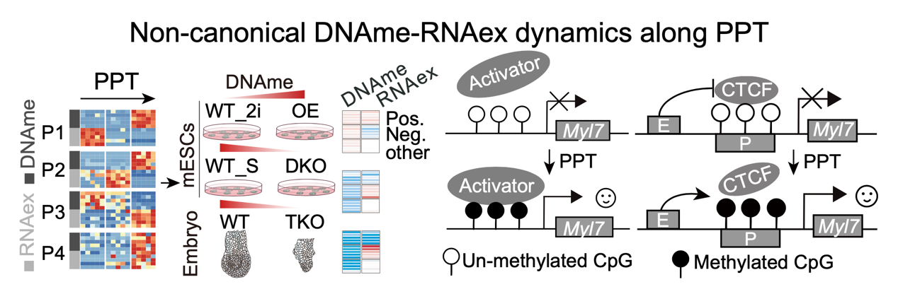 图4: 着床前后转变中的非经典DNA甲基化和转录动态的形成