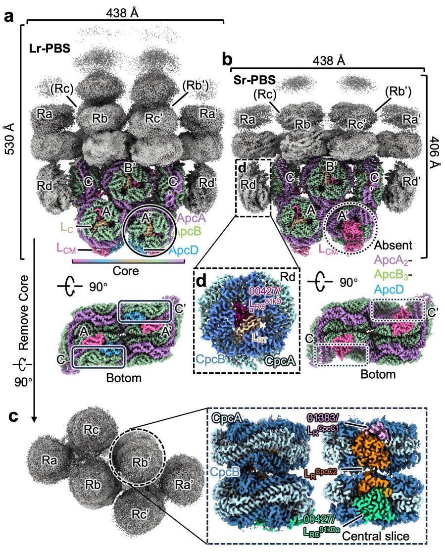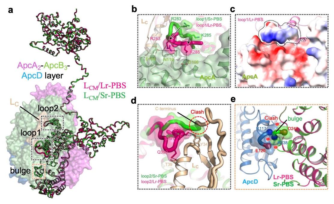 图 2 :在Lr-PBS和Sr-PBS中的LCM的结构差异(与ApcA2-ApcB3-ApcD 层作用)