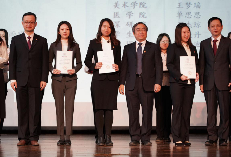 校领导为 杨雪(左2) 王瑶(左3) 廖小燕(右2)等颁发