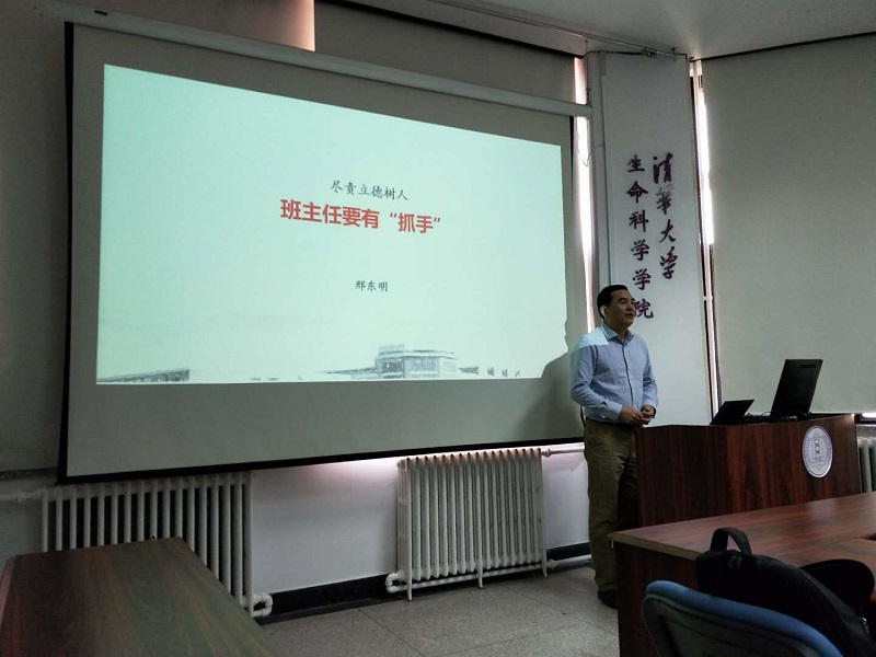 优秀班主任代表邢东明老师首先发言。有着17年带班经验的邢东明老师目前同时担任生94、生84、生74班的班主任,对于如何做好本科生班主任工作,他有着非常独到的见解。他认为:“班主任的责任是立德树人,班主任对学生的影响是极其深远的。要做好班主任工作,除了与辅导员相配合,更要做好一个隐形抓手,通过组织策划有意义的项目活动来构建班级优良学风和凝聚力,从而提升学生自身价值。”邢老师详细地介绍了自己是如何以“公益项目”为抓手,实现“立德树人”目标的,使在场的其他老师受益匪浅。