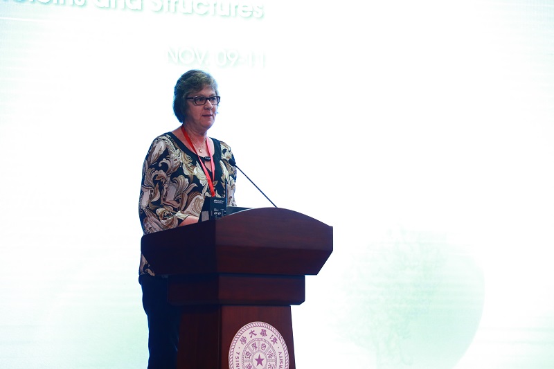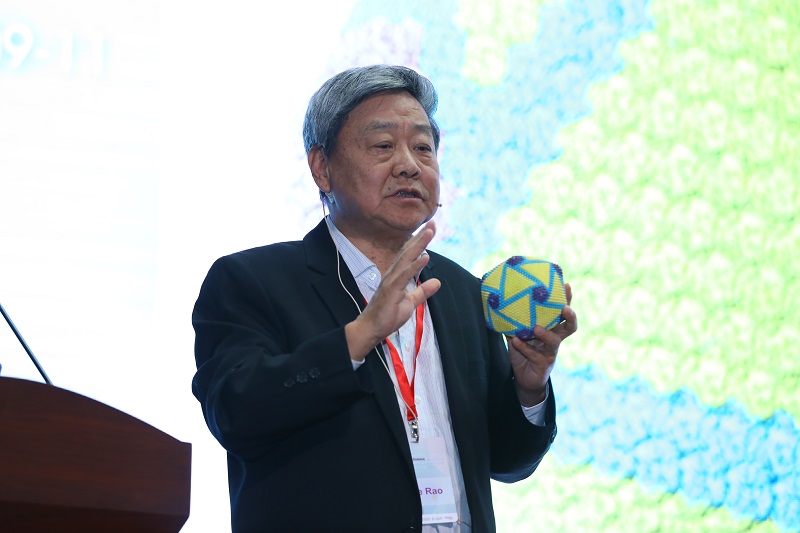 在“新蛋白质结构”专题中,清华大学饶子和教授发表了题为《非洲猪瘟病毒结构与组装机制研究》的报告。饶教授手持一个类似俄罗斯套娃结构的3D模型为大家详细介绍了非洲猪瘟病毒颗粒的结构。纪念斯隆凯特琳癌症中心丁肖·帕特尔(Dinshaw Patel)教授介绍了III型CRISPR-Cas监测复合物的3种酶活性,并强调anti-CRISPR蛋白在抑制CRISPR-Cas的宿主防御通路上的功能。此外,牛津大学的3位科学家:章佩君教授、莉斯·卡彭特(Liz Carpenter)教授和戴尔·威格利(Dale Wigley)教授以及清华大学的李海涛教授、陈柱成教授也做了精彩的报告。