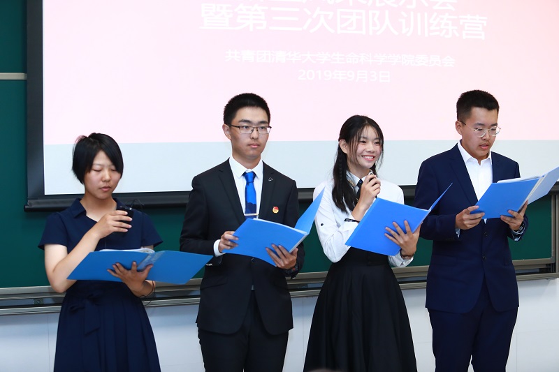 班级展示环节中,各班逐一通过多样化形式进行班级风采展示。其中,生91班通过“九天翱翔浩宇内,一朝腾云傲苍穹”的口号表达同学们在清华中努力拼搏、追逐梦想的决心;生92班同学在班服图案设计中取"nice to see life"的谐音"9's 2 sci life",象征同学们积极探索、渴求真知的精神与对生命科学、对自然真切的热爱之情;生93除常规班级元素设计外,还设计了班级手表、卡贴等多种周边;生94则选择电影片段剪辑配音的形式形成视频班级展示视频;生95和96班则各自填词改编班歌《清华辞》和《大杯奶茶》。通过评委打分,最终生94、96班获得最佳风采奖、生92班获得最具活力奖、生95班获最具凝聚力奖、生93和生91班则取得现场展示奖。同时,生命学院团委也邀请2018-2019学年支部事业金奖、甲团获得班级生85班团支书为新生进行支部建设经验分享。