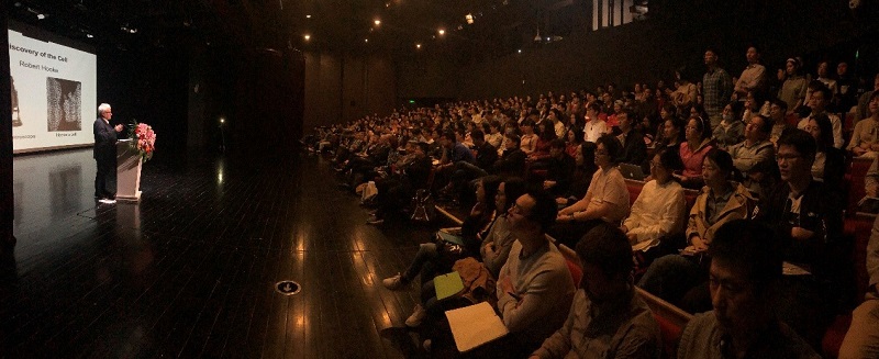 代表团成员首先参观了位于生命科学馆的清华大学冷冻电镜平台,随后,保罗·纳斯爵士在蒙民伟楼多功能厅做了题为《读懂细胞繁殖》的主题报告,并耐心风趣地解答了现场听众的问题。此次讲座被列为清华大学“海外名师讲堂”系列讲座第225讲,由饶子和院士主持。报告结束之后饶子和院士向保罗·纳斯爵士赠送了“海外名师讲堂”纪念牌。