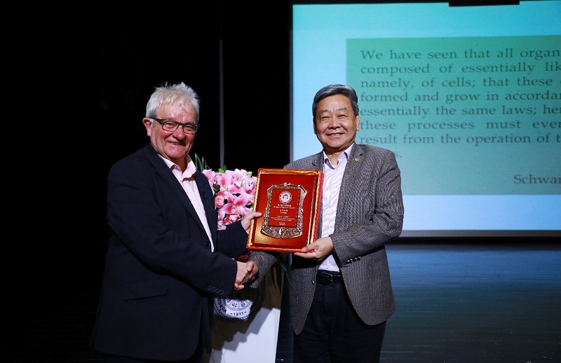 饶子和院士向保罗·纳斯爵士赠送清华大学“海外名师讲堂”纪念牌