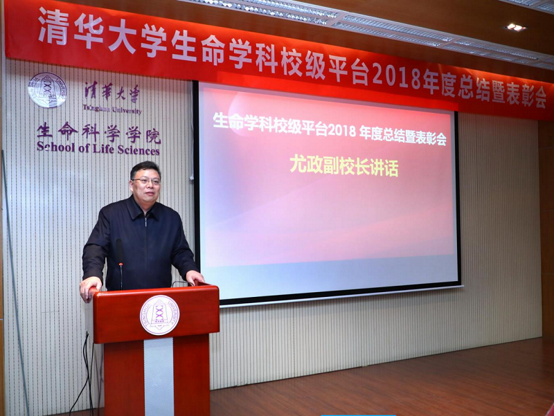 尤政对生命学科校级平台获奖人员表示祝贺,充分肯定了校级平台在平台自身建设、学校双一流建设和学科发展中做出的巨大贡献。他指出校级平台建设是学校硬实力的体现,已经实现平台发展与院系人才引进的良性循环。校级平台3个中心服务范围广,专业性强,管理有序,有可推广的管理经验,作为学校职工队伍人事制度改革试点单位,积极配合学校职能部门工作,为学校相关改革工作提供试点经验。并鼓励平台加强技术研发,与清华多学科间实现交叉融合,充分利用自身优势对科研水平发挥更高的引领作用。