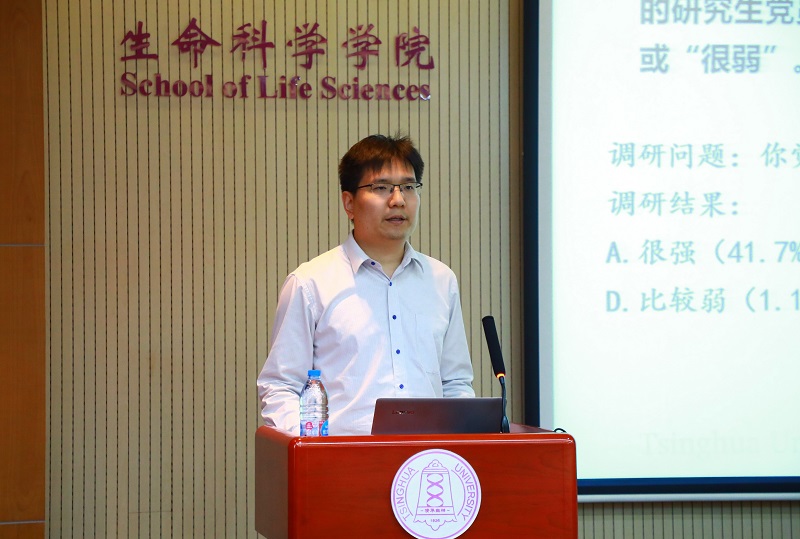 最后,各个小组就集体建设工作中的问题,展开了积极的讨论,交流、分享各自的经验。生博174党支书余洁上台与大家分享了其支部和秦皇岛陈官屯镇中学的红色“1+1”共建活动。