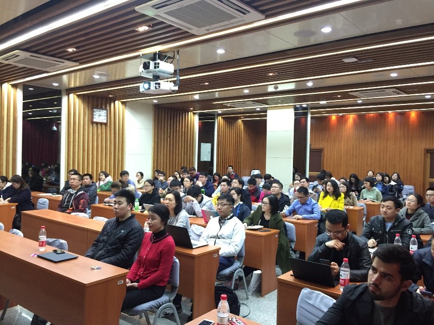首先,来自环境学院的张宇婷讲师作了题为“从雾霾谈起:中国生态文明建设之路”的学习分享。张博士党的联系雾霾的特点和成因,指出了环境保护与治理的重要性、紧迫性,同时分析了环境问题复杂的成因。她结合十九大报告和国务院机构改革,以“两山论”和“河湖长”制为例,深入浅出地向大家介绍了中国环境体制、环境治理理念的建立与变革,让大家对中国环境治理的思路有了更深刻的认识。