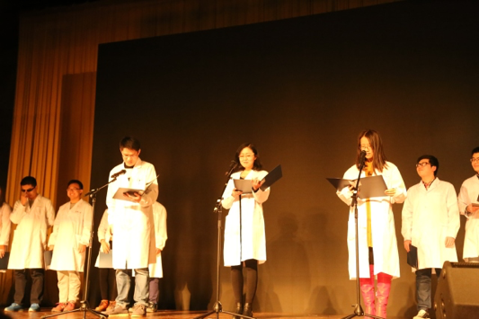 晚会由协和ambulance乐队开场,两首摇滚歌曲酣畅淋漓,即刻点燃舞台。宣策部制作的大气磅礴的开场视频配合主持人对生物进化历程的阐释开场,将观众立刻带入生物进化历史长河的悠远气氛之中。