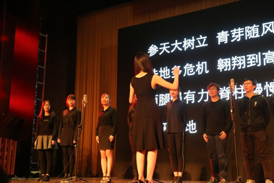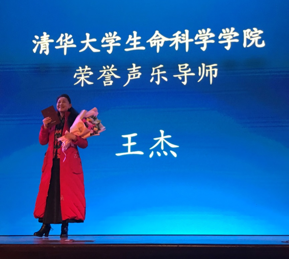 晚会现场,还有一个特殊的颁奖环节,那就是为本科生“一二·九”合唱指挥——王杰老师颁发“清华大学生命科学学院荣誉声乐导师”奖。王老师与生命学院已经合作十年,留给同学们许多难忘的美好回忆。