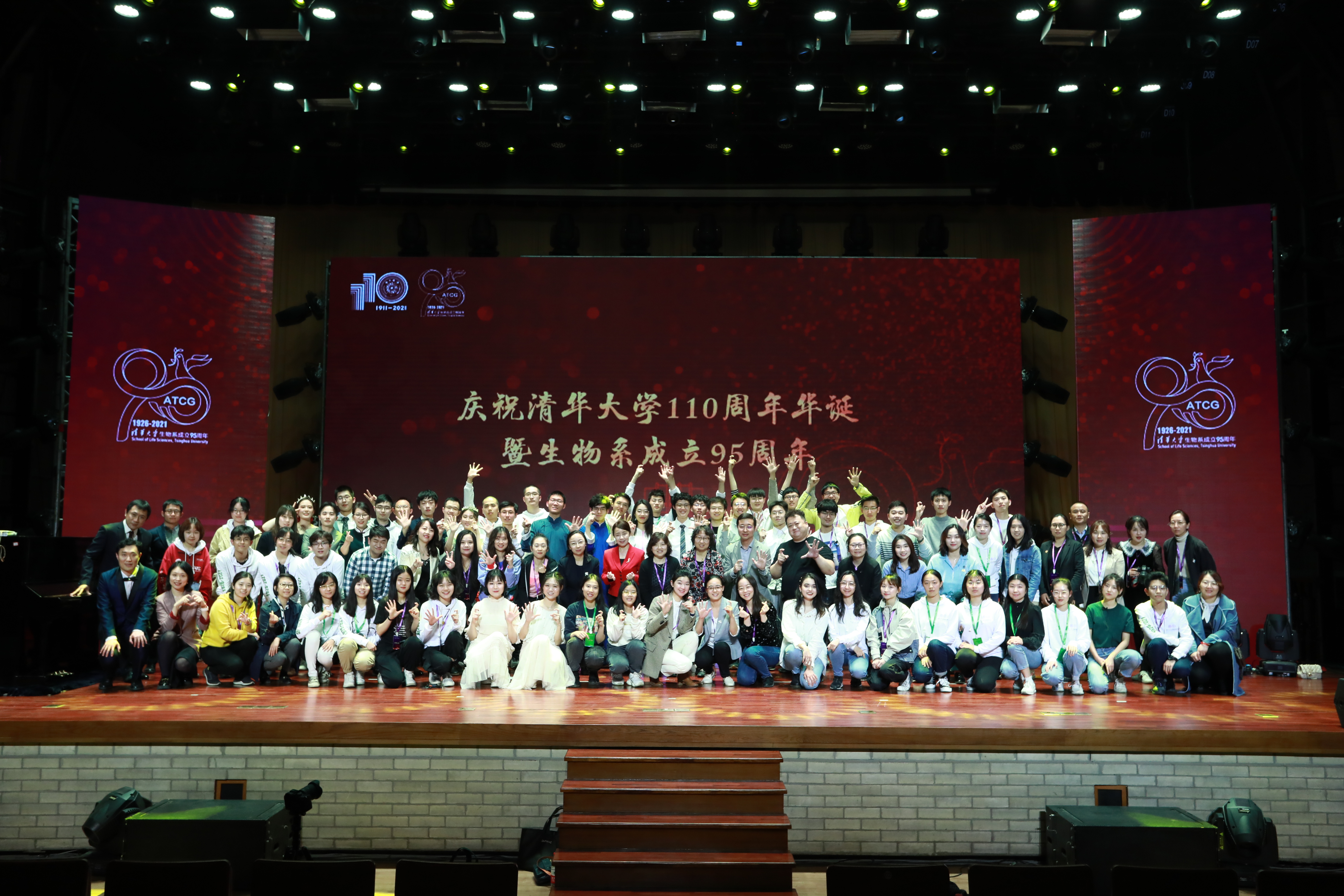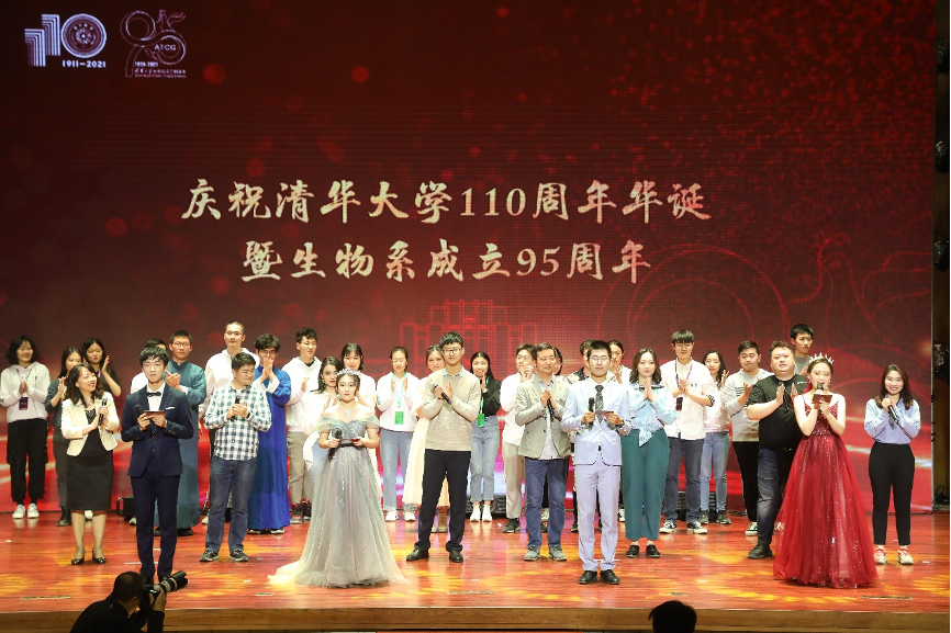 大会还首次播放了为庆祝清华生物系成立95周年特别拍摄的宣传片——《璀璨生命的光阴》以及毕业校友和在校师生共同录制的祝福视频。庆祝大会后,在清华大礼堂上演了由生命学院师生共同演绎的联欢晚会。歌舞、相声、乐器表演、话剧、乐队演唱等,晚会形式丰富,精彩纷呈。最后,庆祝大会在全体师生齐唱《相亲相爱》的热烈氛围中落下帷幕。