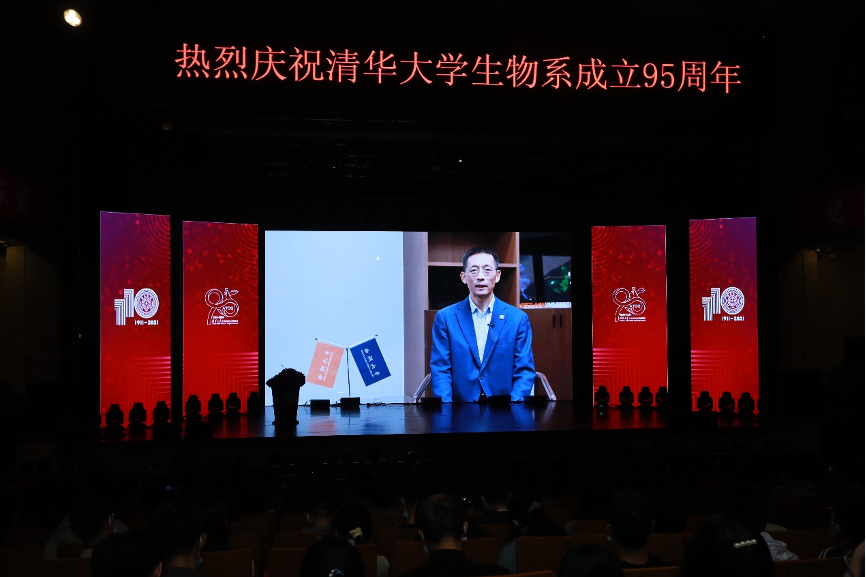 生命学院首任院长、中国科学院院士施一公教授虽未能亲临现场,也通过一段视频,表达了对生物系建系95周年的祝贺。