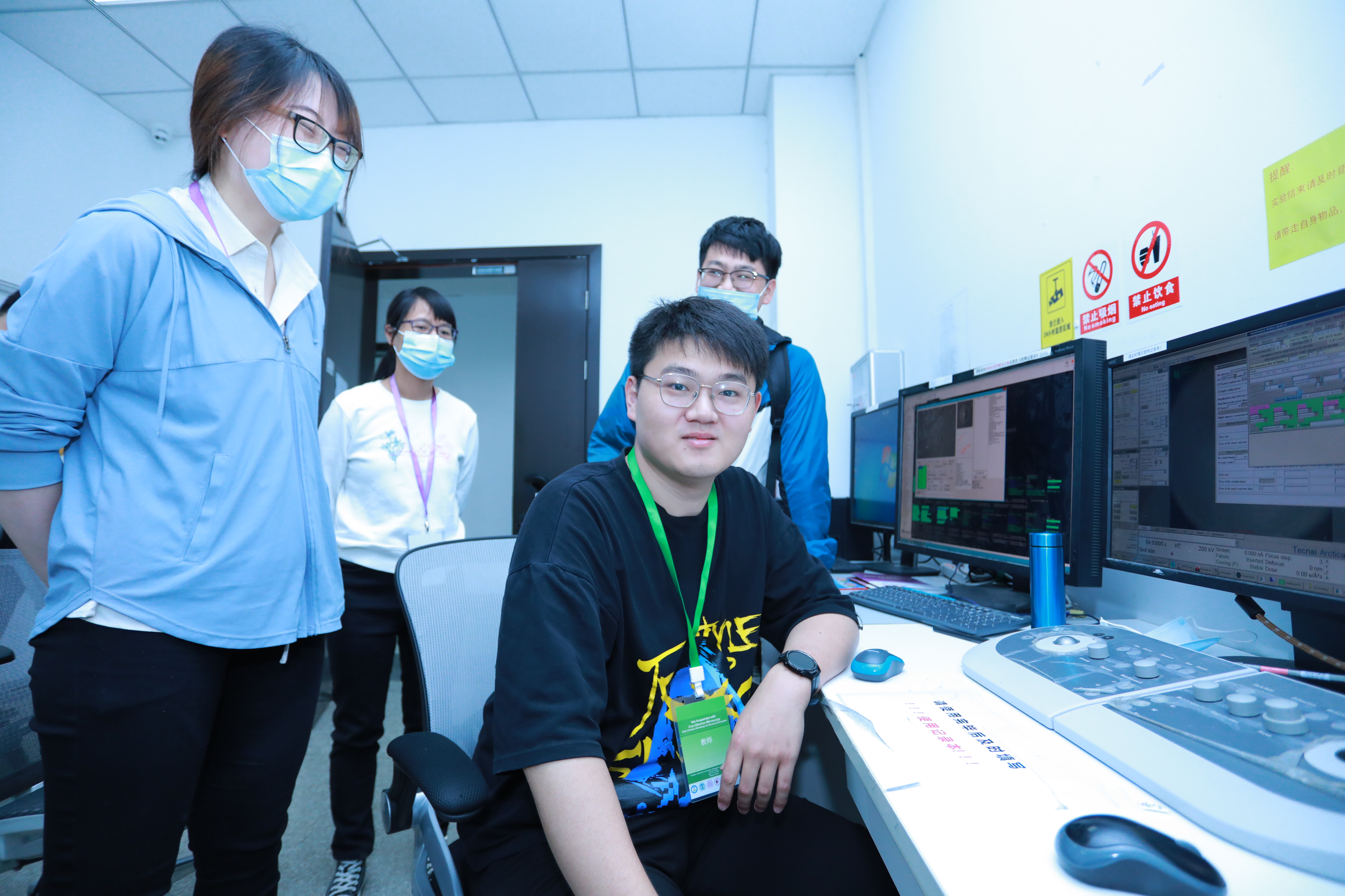 为了让学员进一步掌握和巩固冷冻电镜理论知识,提高学员的实践能力,研讨会专门在会中安排了连续两天的实习操作。实习操作包括:“负染样品制备技术”、“冷冻样品制备技术”、“负染电镜操作技术”、“冷冻电镜操作技术”、“Relion图像处理技术”五大部分。其中,清华大学蛋白质研究技术中心冷冻电镜平台和中科院生物物理所生物成像中心各自承担了一半学员的样品制备和电镜操作技术培训,全部学员的Relion图像处理技术培训在清华大学完成。教学演示与操作指导的培训教师均来自清华大学生命科学学院、中科院生物物理所以及赛默飞公司长期从事冷冻电镜技术和数据处理的专业人员。研讨会结束前,还分别就单颗粒冷冻电镜技术以及Tomography/MicroED技术安排了讨论和答疑环节,让学员们有机会围绕冷冻电镜技术相关问题集中向业内专家请教。本次研讨会的组织模式有效地保障了学员的学习效果,并极大地提高了学员分析问题和解决实际问题的能力。