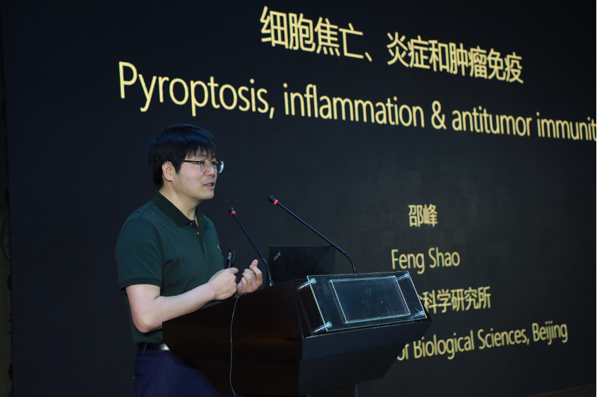 邵峰院士用幽默风趣的语言,如讲故事一般,为大家讲述了自己在“细胞焦亡”领域的细致而全面的科研工作,揭示了细胞焦亡的分子机制,并对其在肿瘤免疫治疗方向的应用前景作了展望。精彩的报告赢得了在场博士后们的阵阵掌声与积极互动。