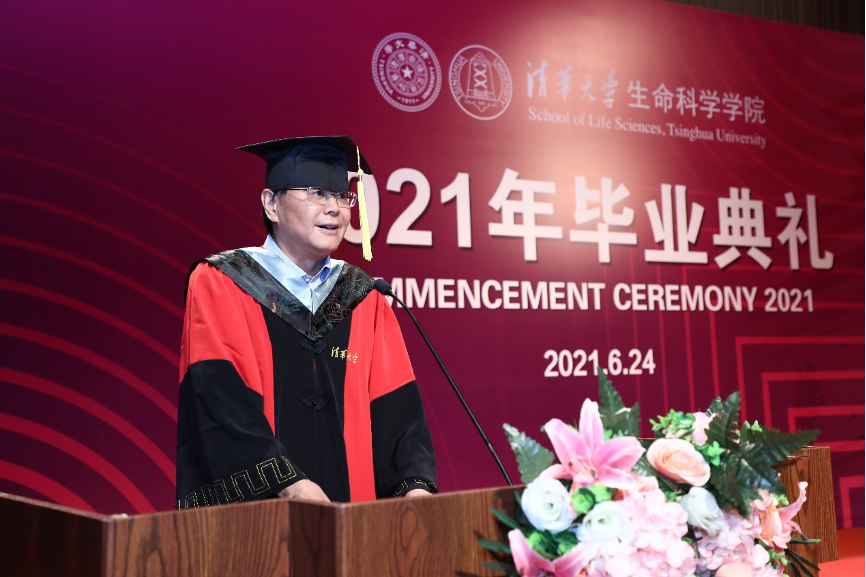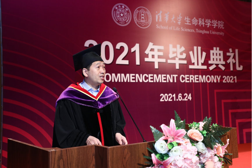 仲夏蝉鸣,时光流淌,离别依依。2021年6月24日上午,清华大学生命科学学院2021年毕业典礼在蒙民伟音乐厅隆重举行。生命学院今年6月份毕业生共计192人,其中,本科毕业生75人,硕士毕业生5人,博士毕业生112 人。出席今天毕业典礼的毕业生有186人。出席典礼的嘉宾有:中国工程院院士、清华大学自动化系教授戴琼海,清华大学生命科学学院2011届博士校友、同济大学医学院教授左为。生命学院院长时松海、党委书记吴畏、副院长刘栋、欧光朔和王新泉,隋森芳院士、孟安明院士及23位生命学院和医学院的研究生导师出席典礼,共同见证了这一庄严的时刻。典礼由学院党委副书记谢莉萍主持。