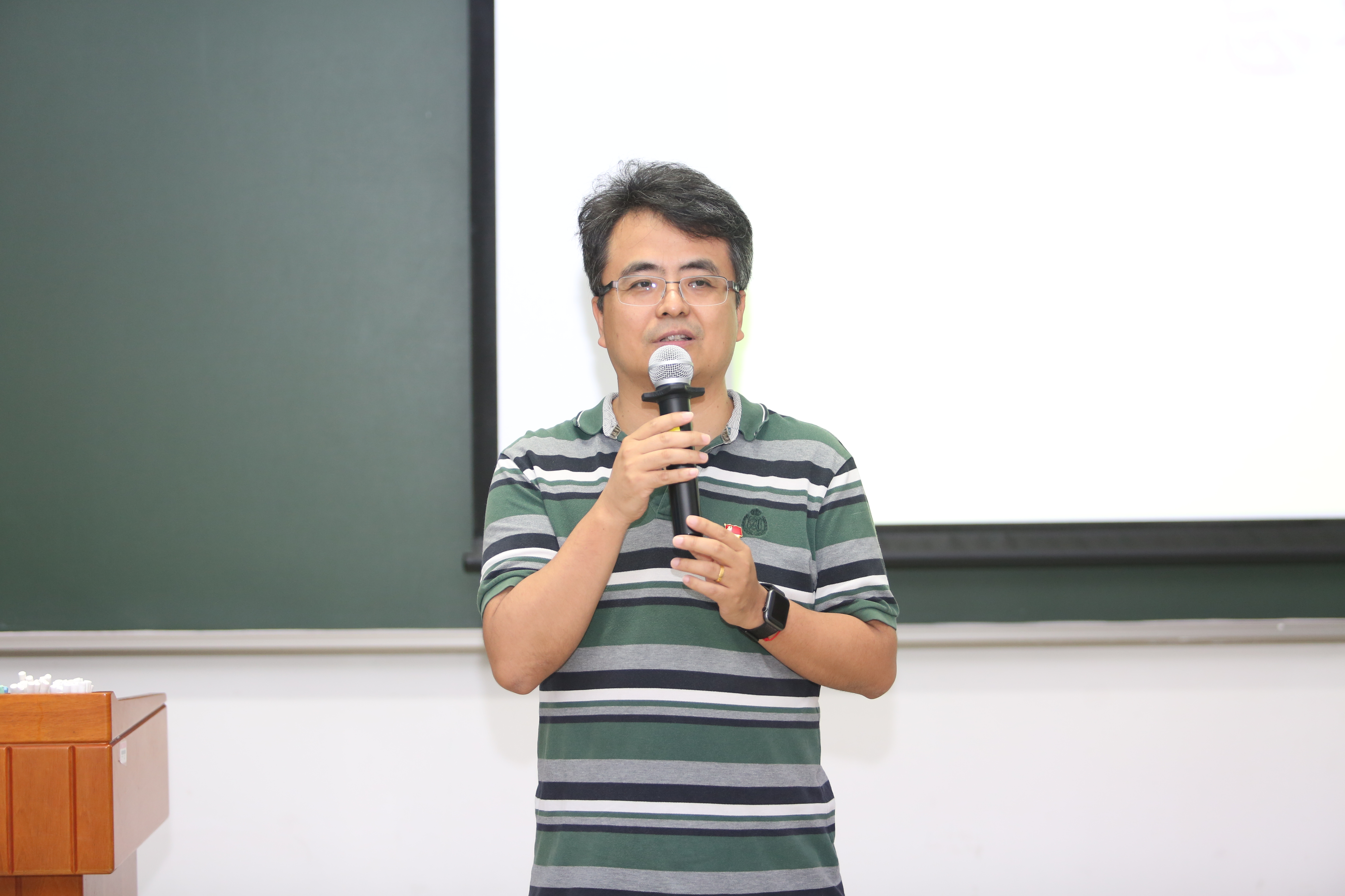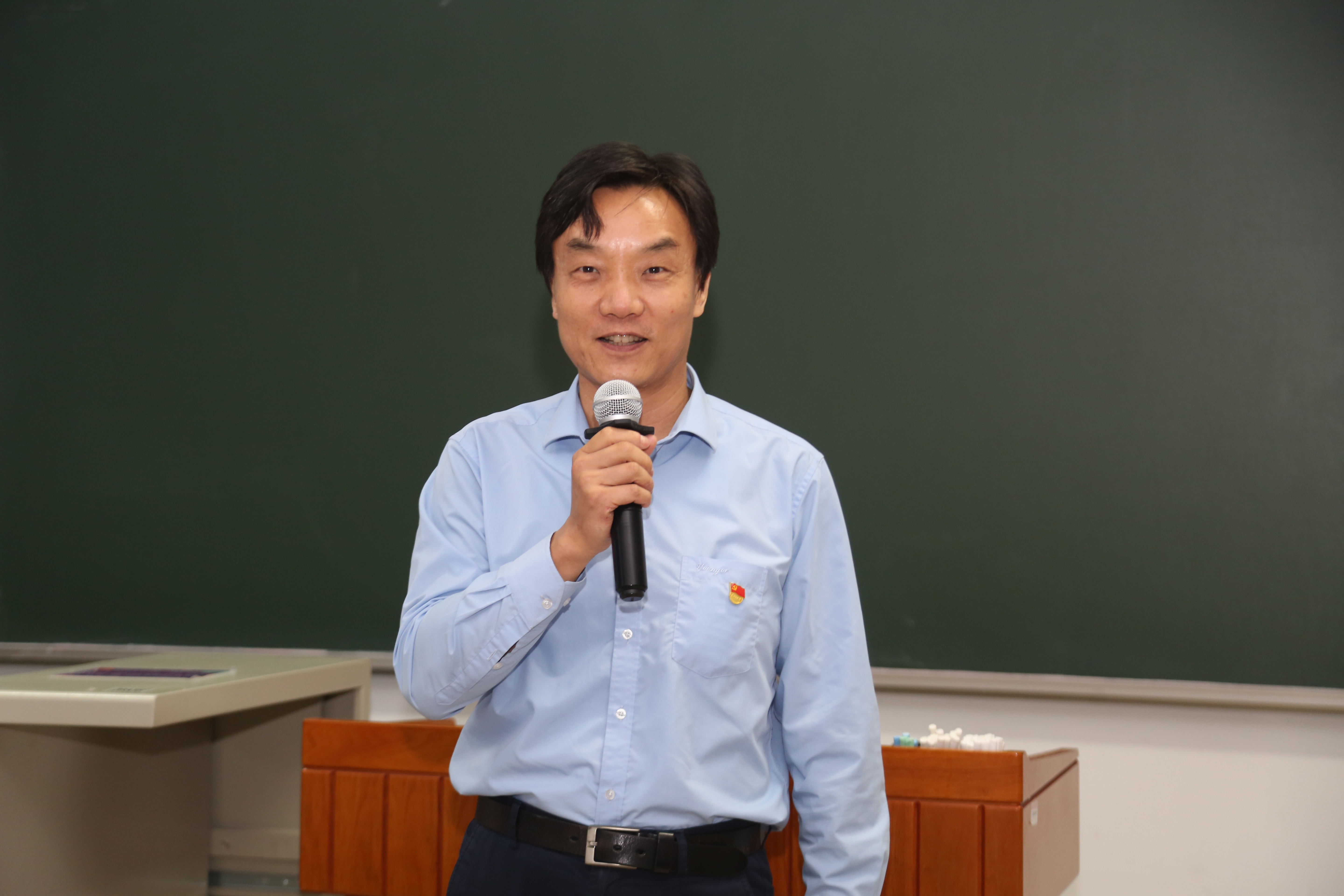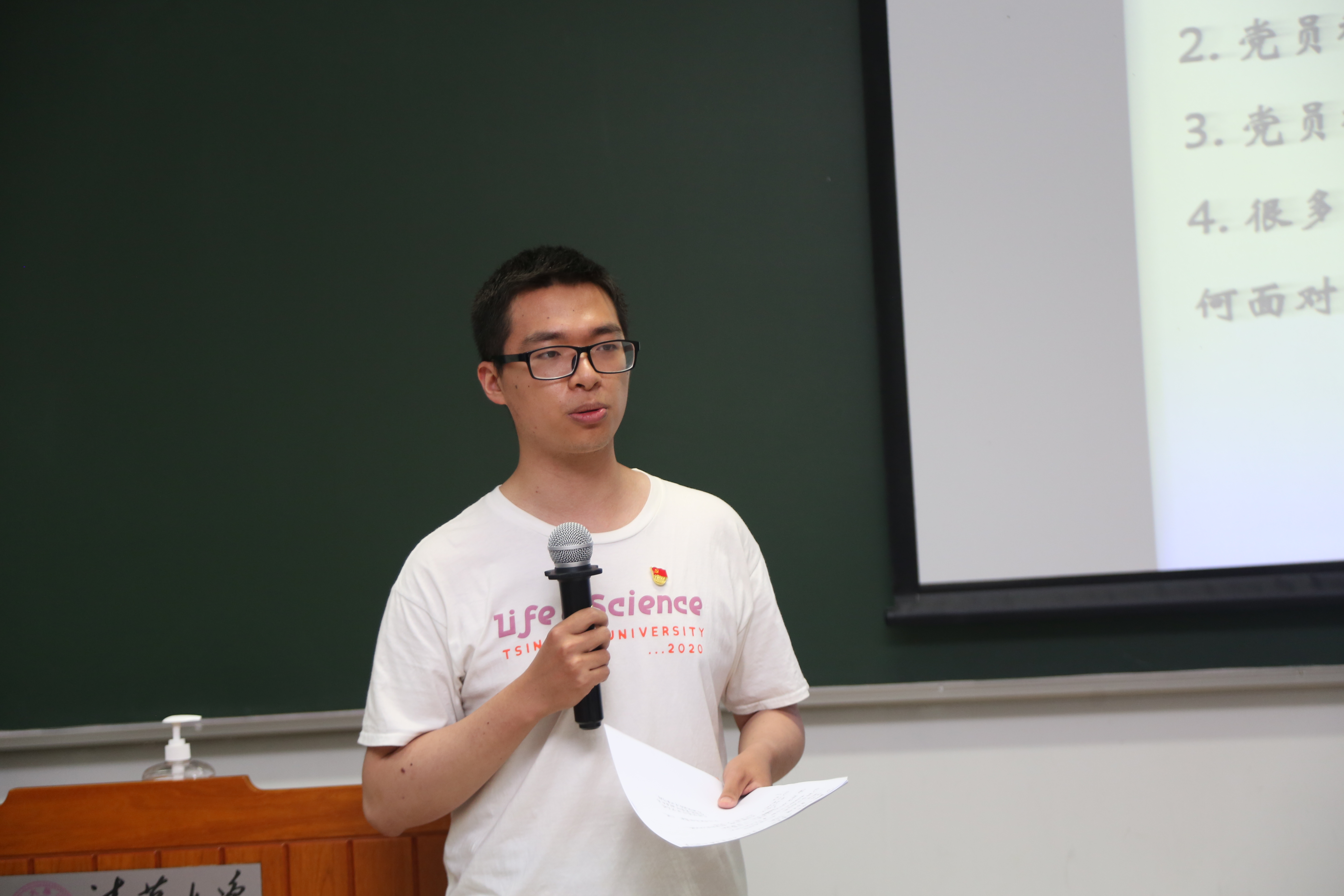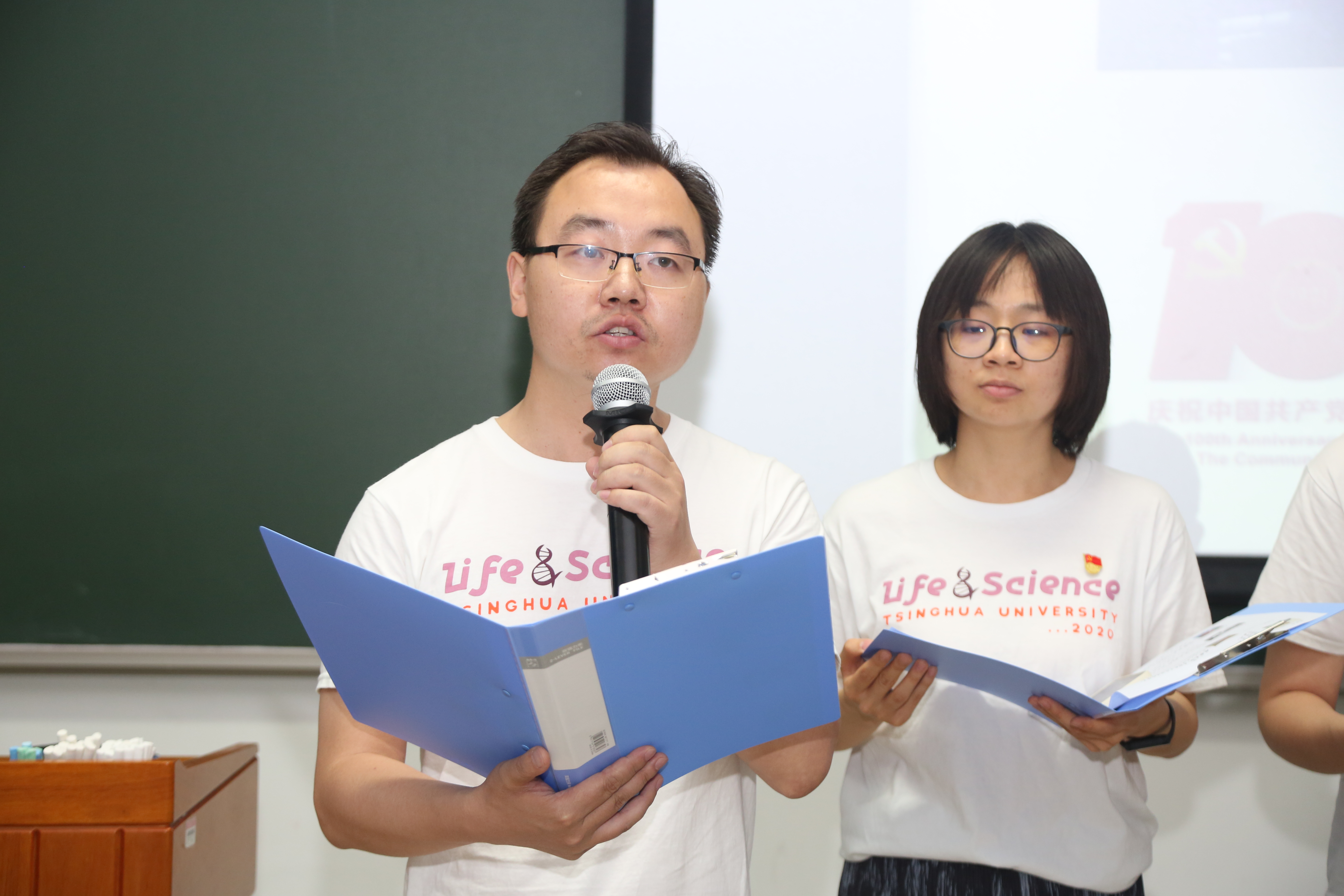 王新泉老师作为中青年教师代表讲述了他入党的故事。王老师是清华大学tenure track制度施行后第一批入职的教师,党组织在他压力最大的时候给了他关怀,同时他深切感受到了党员的榜样和先锋带头作用。经过一番刻苦努力,王老师于2017年加入中国共产党。在活动中,王老师表达了在收到政治生日贺卡时的激动心情,也向生命学院10位“光荣在党五十年”党员同志表达了崇高敬意。针对我国在关键科技领域被卡脖子的问题,王老师号召在场师生们勇于承担使命,努力做出更多原创性成果,为清华大学迈向世界一流大学和我国生命科学事业的发展贡献积极力量!