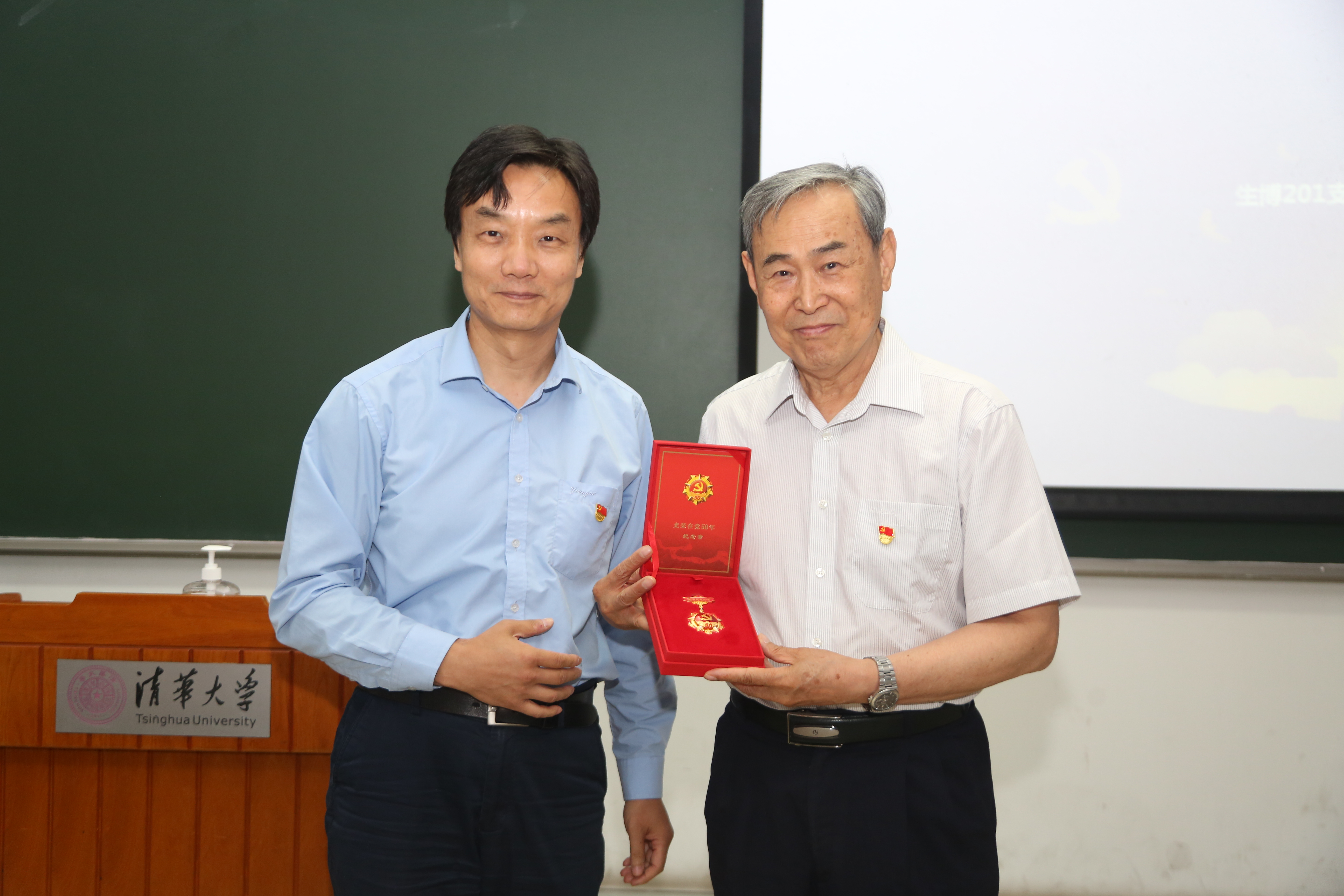 活动接近尾声时,生命学院党委书记吴畏代表学院为此前没能到场参加颁发仪式的隋森芳老师颁发了“光荣在党五十年”纪念章,在场所有同志见证了这一伟大光荣的时刻!