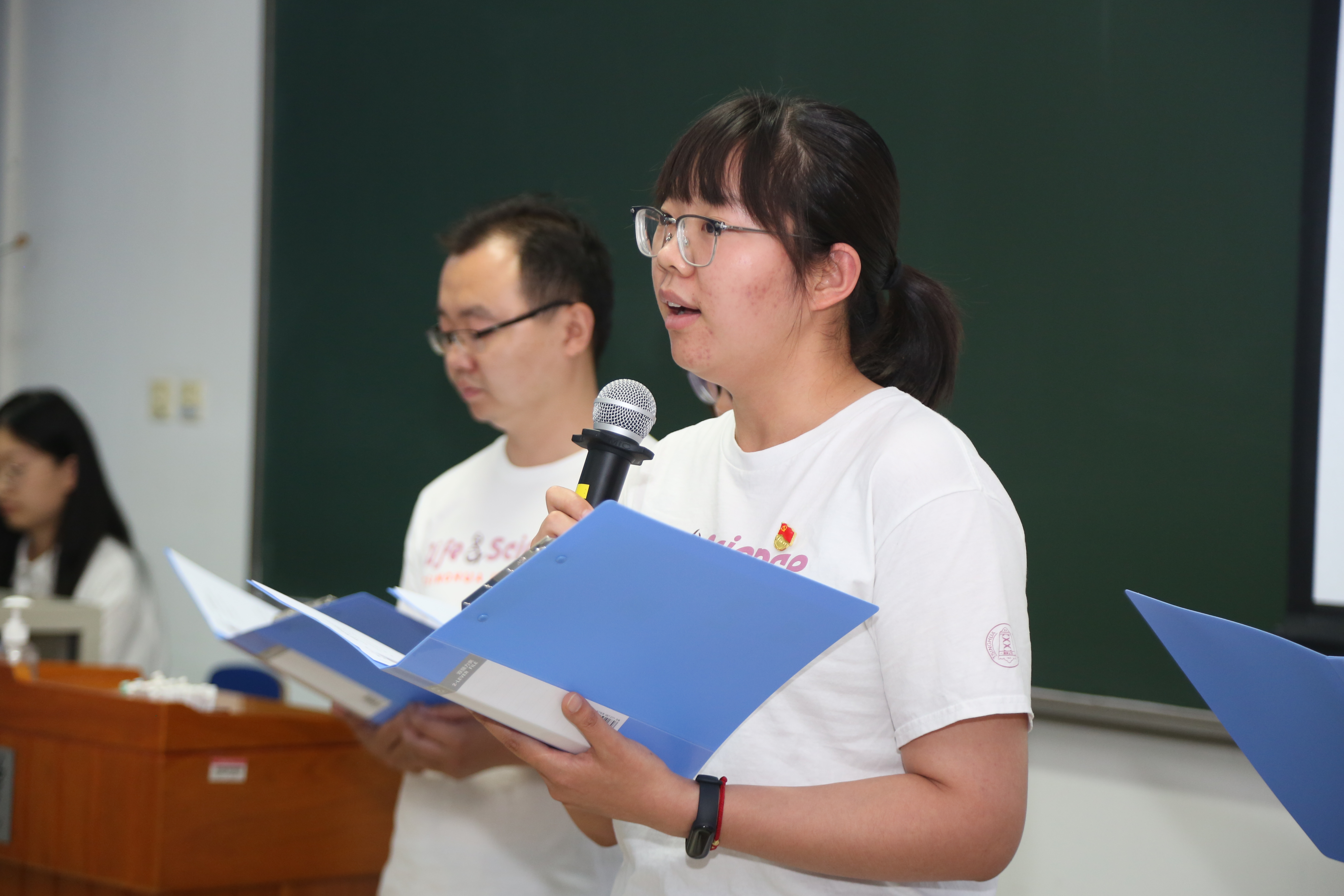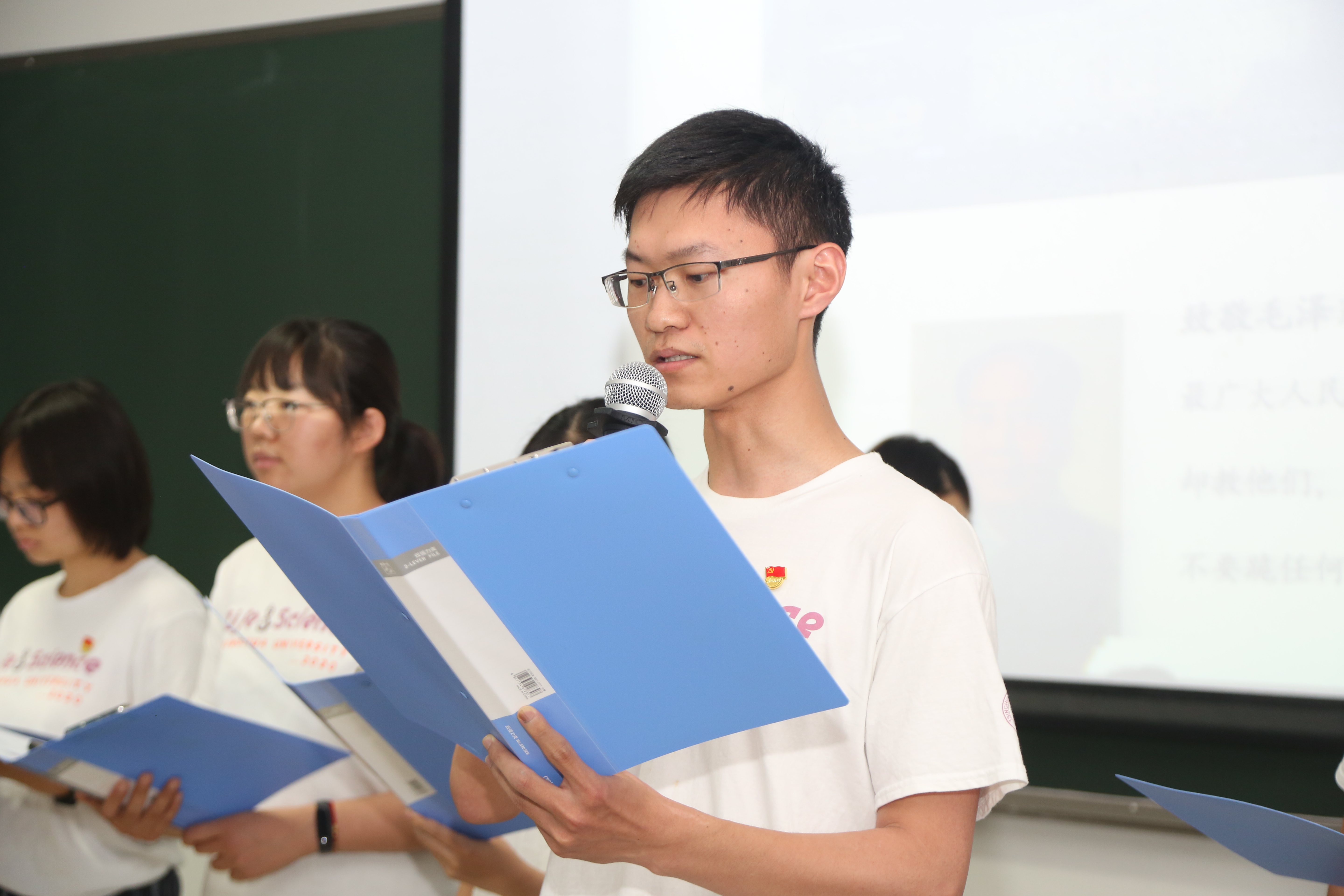 伴随着《不忘初心》的旋律,来自生博201和204支部的党员们深情地朗诵了自己写给心目中优秀党员的三行情诗。同学们通过简短而热烈的诗句,歌颂了李大钊、毛泽东、钟南山和张桂梅等优秀共产党员的伟大品格。百年来,无数的共产党人把“为人民服务”的宗旨融入到自己的一言一行中,为谋取中华民族的伟大复兴不懈奋斗,他们就是我们要追的星。