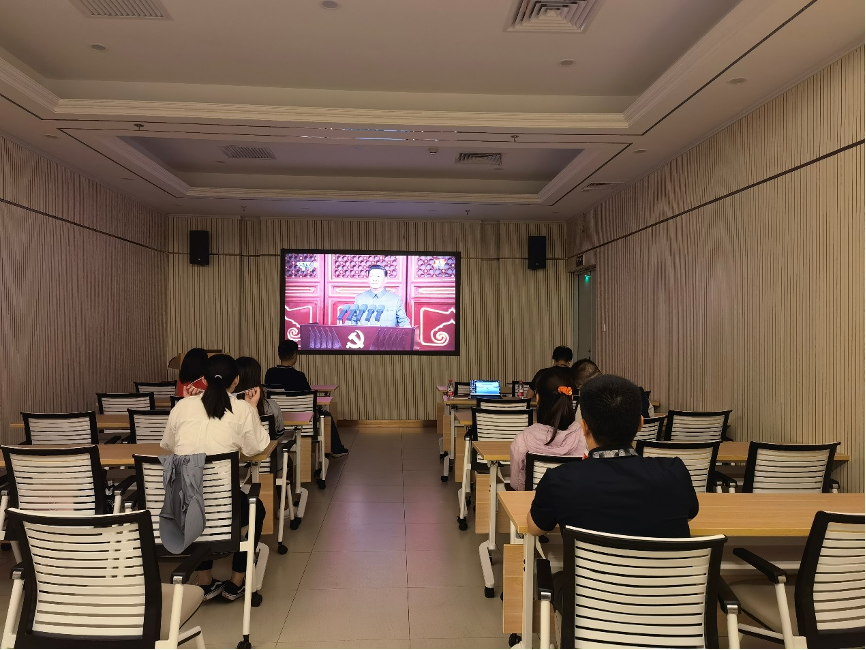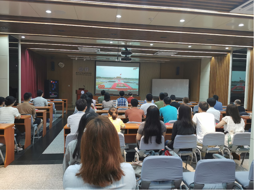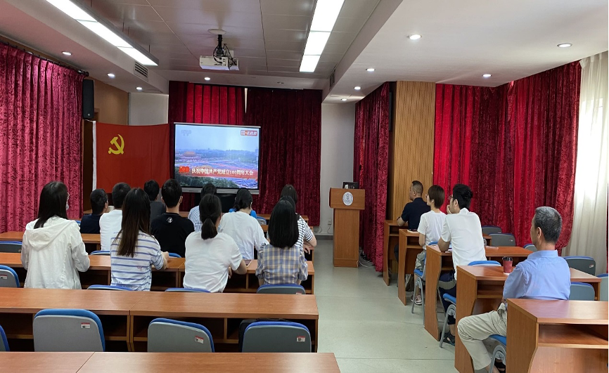 在生物技术馆2201会议室集中观看庆祝中国共产党成立100周年大会视频回放