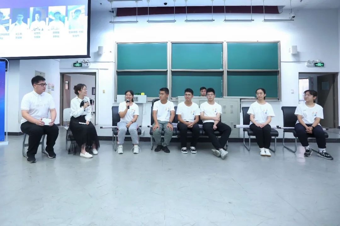 在与老师们进行了轻松愉快的交流后,生命学院贺舒楠、化学系汪禹驰两位主持人对生命学院陈艺青、医学院巩师远、化工系管昊楠、化学系李昊恩、药学院李昕仪和生命学院张淑杰六位新生代表进行了访谈。