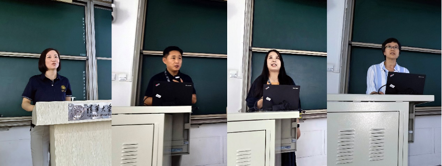 (图上从左至右:江轶老师讲解实验室生物安全;谢忠忱老师讲解实验动物安全;全慧老师讲解实验室安全;李德老师讲解辐射安全与防护)