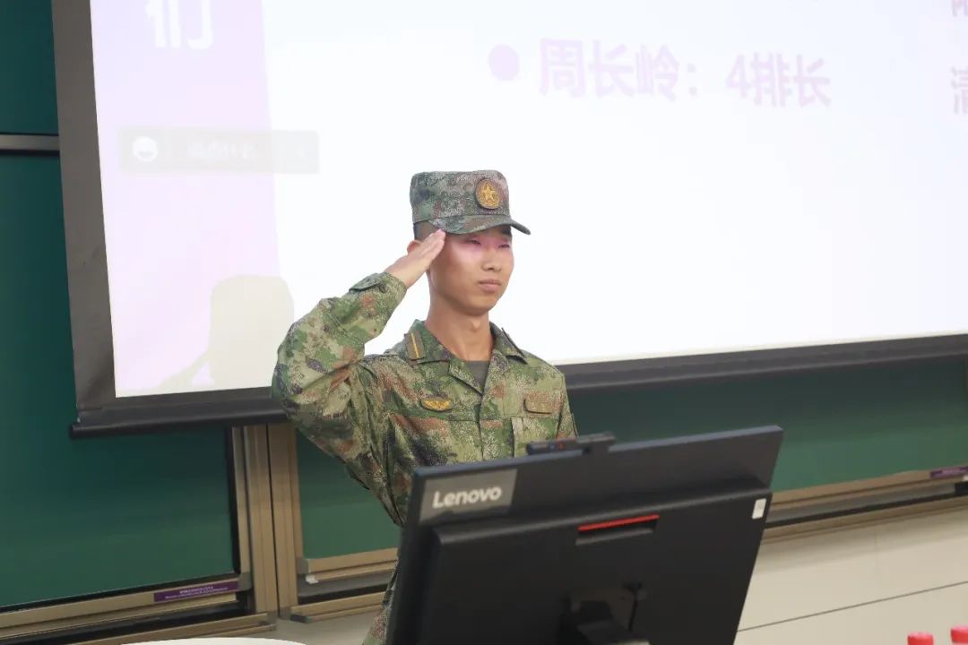 学院所在连队的五位军训教官依次与同学们见面。教官们希望同学们能够在本次军训中,认真学习、刻苦训练、学有所得,积极锤炼自己不畏艰难、坚韧不拔的意志,圆满完成此次军训。