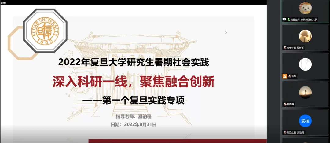 复旦大学生命科学学院徐玥同学带来了题为“深入科研一线,聚焦融合创新”的实践专项分享。该实践项目聚焦于生物科学领域的技术创新与学科融合,采取线下访谈和线上调研相融合的“互联网+实践”模式,对复旦大学实验室、课题组取得的创新成果进行调研,积极探索生物科技创新向多领域广泛赋能的新路径。