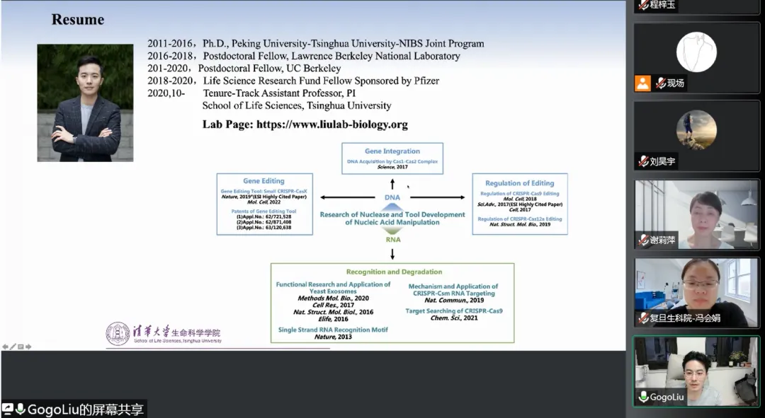 清华大学生命科学学院助理教授刘俊杰老师围绕“学术职业生涯规划”展开分享。刘老师讲述了自己从博士到独立PI阶段的学术经历,并介绍了自己的科研方向和研究领域,包括核酸酶方面的工作和基因编辑工具的开发等。