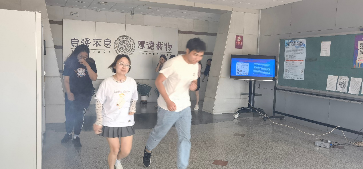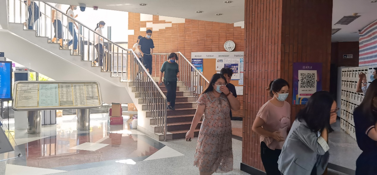 9月1日下午,在人环楼组织了第二场消防疏散演习,火警警报拉响后3分钟内,有序疏散楼内师生76人。