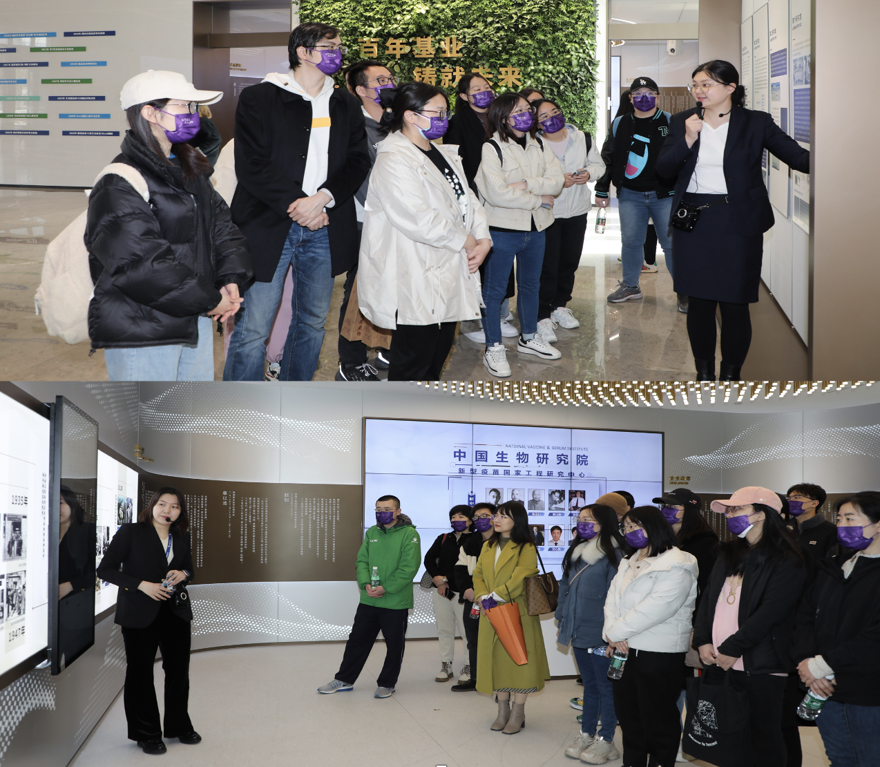 在工作人员的带领下,师生们首先参观了中国生物研究院的院史展,了解了公司百余年的发展历史,近距离感受了中国生物制品行业在老一辈科学家的带领下,从无到有、从弱到强,直至与世界领先水平比肩的艰辛历程。接着,师生观看了公司的宣传片以及介绍研究院五大创新中心的专业展板。