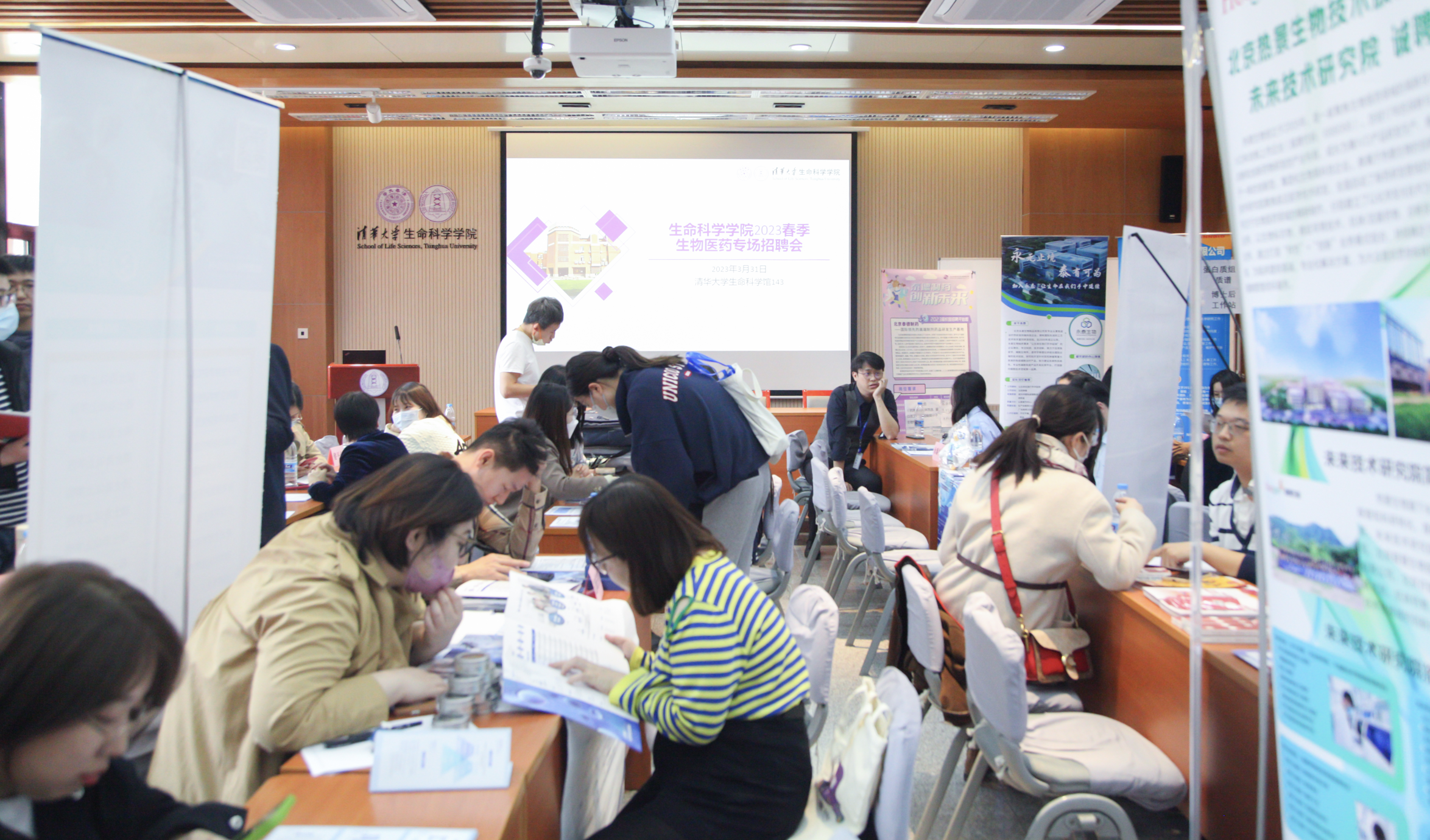 为了促进2023届毕业生高质量就业,强化学院与用人单位之间的联系,3月31日下午, 2023春季生物医药专场招聘会在生命科学馆143会议室举行。来自中科院上海营养与健康研究所、恒瑞医药、百普赛斯、甘李药业、凯莱英等24家用人单位参会,提供了包括博士后、研究员、研发工程师、研发经理等在内的160多个岗位,吸引了近百位毕业生前往。