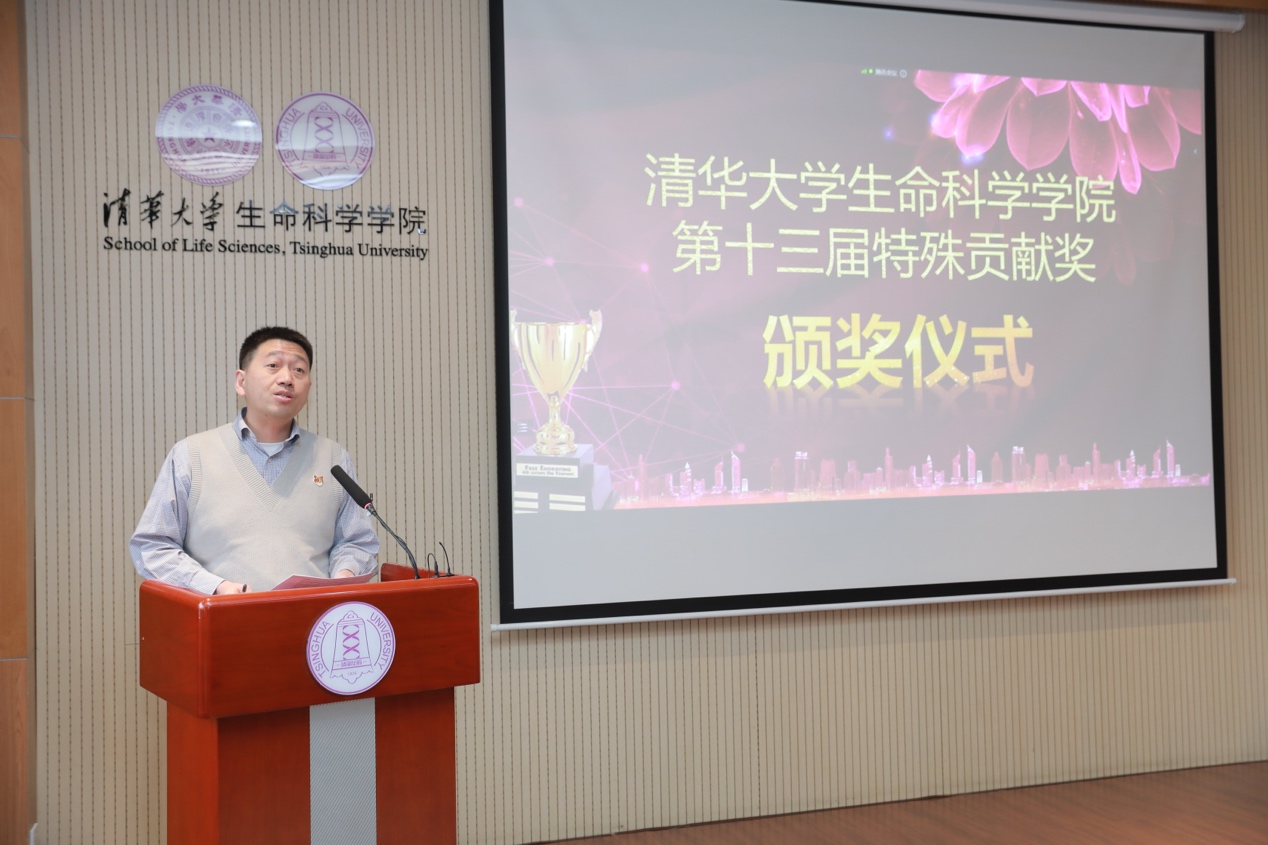 春浓四月,繁花相竞。在清华大学即将迎来112周岁生日之际,生命学院年度颁奖会在生命科学馆143会议室隆重举行。颁奖仪式由生命学院院长时松海主持,生命学院党委书记吴畏、党政联席会成员以及全院60余位教职员工参会,共同见证新一届“生命学院特殊贡献奖”、“郑昌学优秀教学奖”和“年度科研突破奖”获奖人的揭晓。