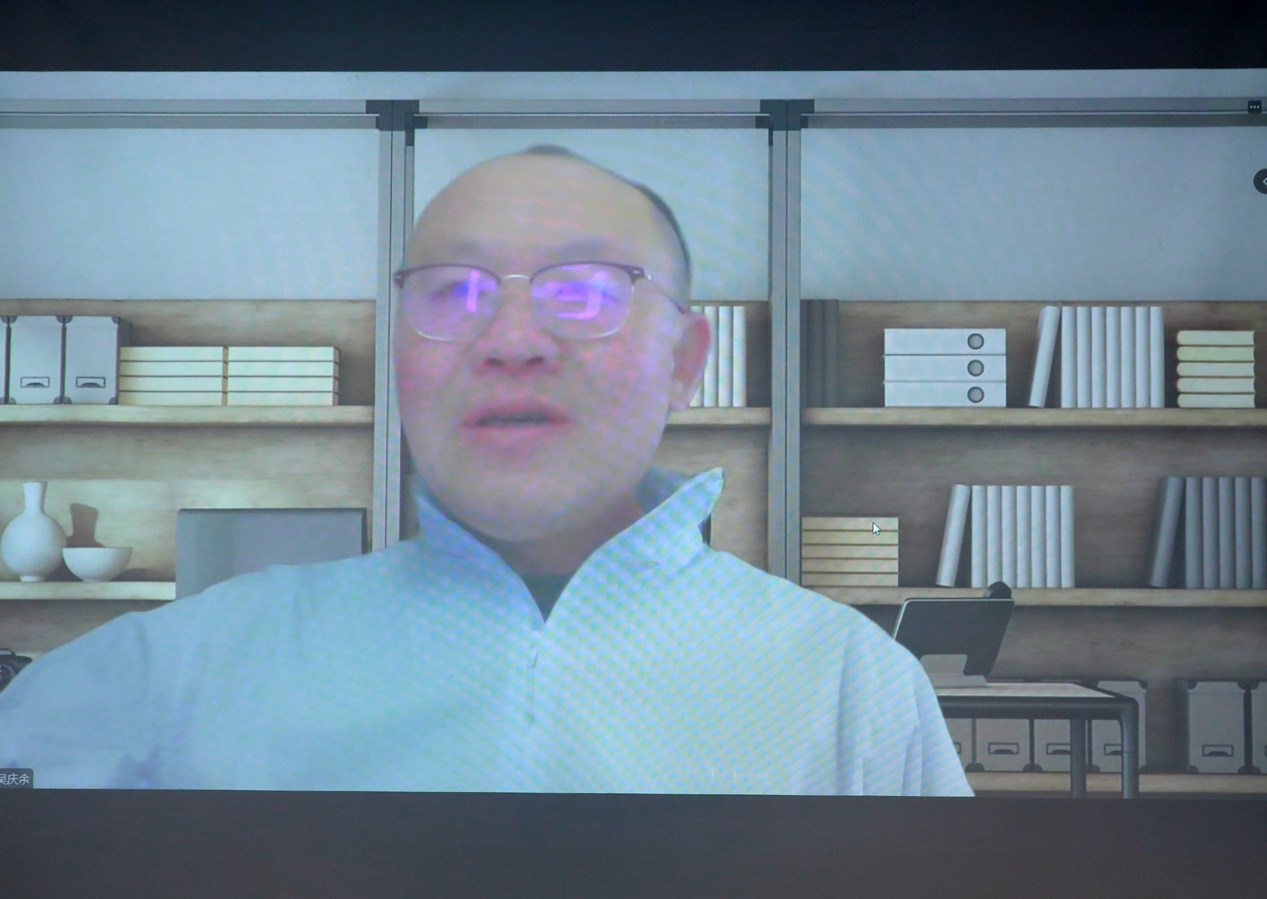 吴畏书记和时松海院长为吴庆余(线上参会)颁奖