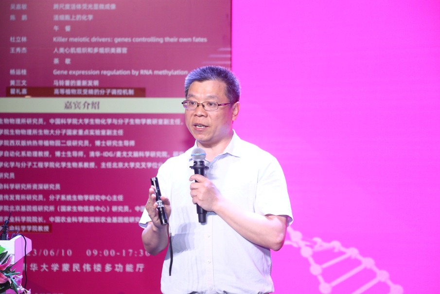 2023年6月10日,由清华大学生命科学学院主办的“清华大学第八届生命科学前沿交叉学术论坛”在蒙民伟楼多功能厅顺利举行。本届论坛共邀请到9位杰出科学家作报告,他们是:中国科学院生物物理研究所研究员李国红,中国科学院西双版纳热带植物园二级研究员谭垦,清华大学自动化系助理教授吴嘉敏,北京大学化学与分子工程学院化学生物系教授陈鹏,北京生命科学研究所资深研究员杜立林,中国科学院遗传发育所研究员王秀杰,中国科学院北京基因组研究所(国家生物信息中心)研究员杨运桂,中国热带农业科学院院长黄三文,北京大学生命科学学院教授瞿礼嘉。