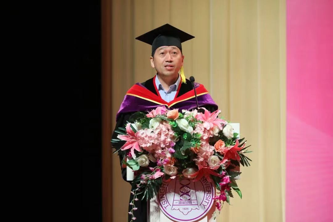 时松海在讲话中,向毕业生们致以最热烈的祝贺,并结合自己在科研、工作等方面的心得和感悟,为同学们上最后一课。他勉励同学们,要学会感恩,珍惜成长,“心怀希望”,树立积极的人生态度,同时要“善于等待”,因为真正的成就,往往需要时间和耐心。院长的祝福与勉励,字字句句,发人深省。