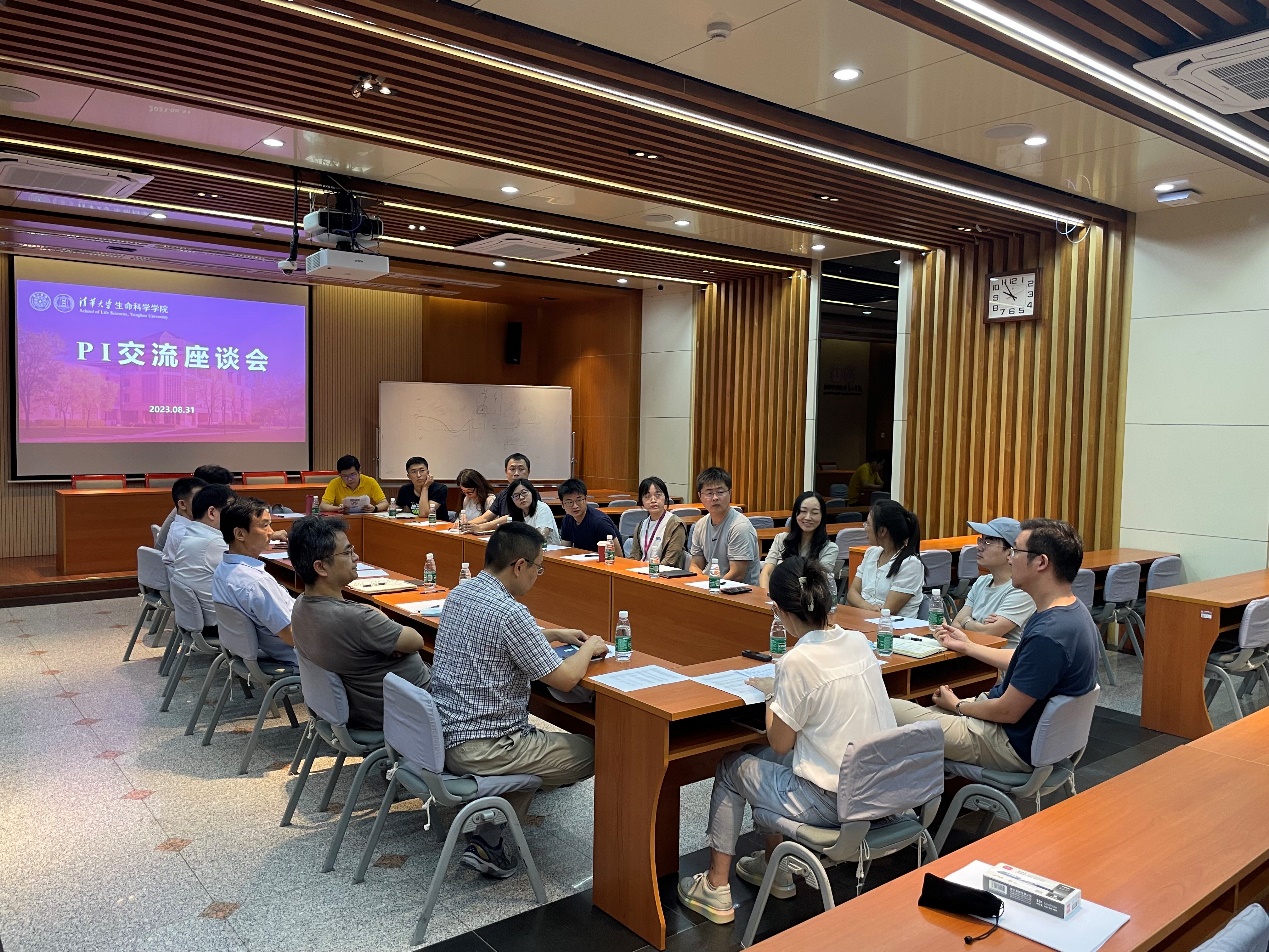 下午的座谈会面向学院的“中层”PI,学院同时邀请了几位资深PI共同参会。会议主要聚焦于“中层”PI的学术发展和职业成长。时松海指出,“中层”PI是支撑学院发展的中坚力量,学院非常关注“中层”PI的发展状况和实际需求,尽可能为老师们提供良好的支撑。同时建议“中层”PI应有更强的使命感和紧迫感,要对自身和学院的发展进行深度思考,充分参与学院未来发展,积极推动高质量人才培养和科研创新。谢道昕院士在介绍自身成长经验的同时,强调了“中层”PI应当聚焦自身领域的重大科学问题和国家重大需求,及时调整研究方向,要重视自身发展所需资源并积极主动地去争取。班子其他成员及资深PI代表还就“中层”PI提出的有关学院人文关怀、核心课程建设及学生培养环节等具体问题进行了深入交流。与会人员一致认为今后应该多渠道开展积极有效的交流讨论,对PI成长和学院发展都有重要作用。