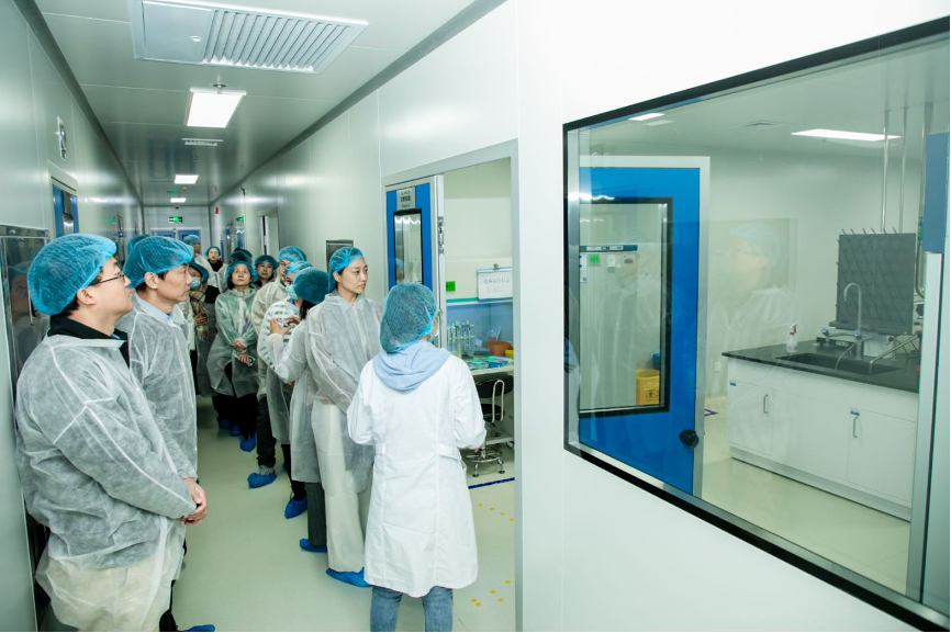 座谈交流前,我院师生首先前往北京艺妙神州医药科技有限公司(简称“艺妙神州”)大兴GMP生产基地参观调研,实地了解“艺妙神州”的发展历程、企业文化、技术攻关、核心产品以及CAR-T药物产业化等相关情况,并重点参观了公司GMP生产车间和实验室。